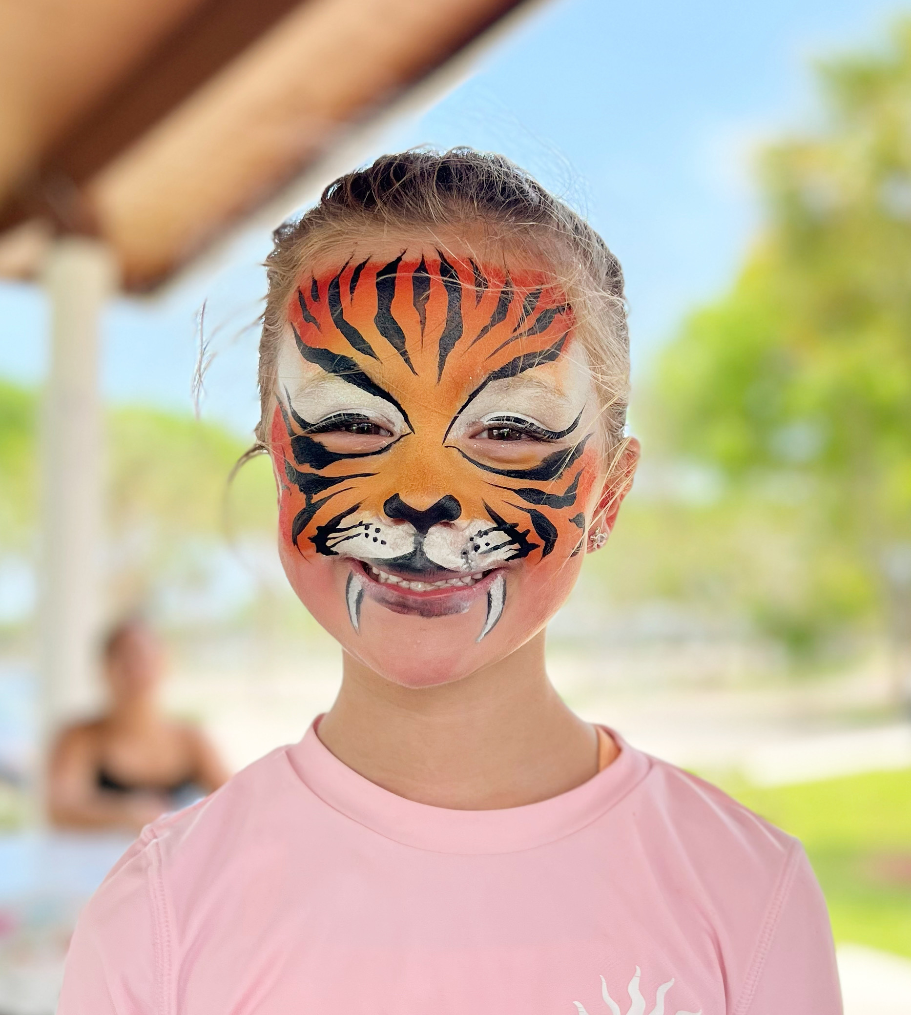 Transform into your favorite character or let your imagination soar with our vibrant face painting service. From dazzling butterflies to ferocious tigers, our talented artists will bring your vision to life with bold colors and intricate designs.